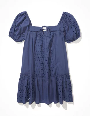 AE Eyelet Puff-Sleeve Swing Mini Dress