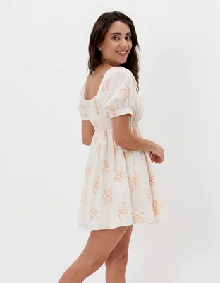 This mini dress packs *major* style with a square neck, short sleeves and a cinched waist.