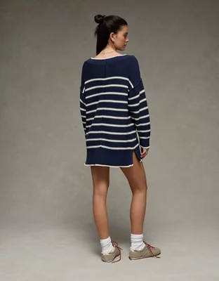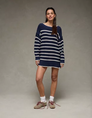 AE Striped Boat Neck Mini Sweater Dress