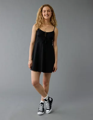 A simple, sweet mini dress with endless styling options, featuring a tie front detail.