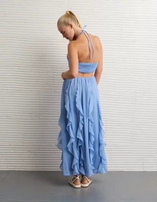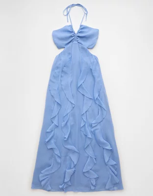 AE Ruched & Ruffled Halter Maxi Dress