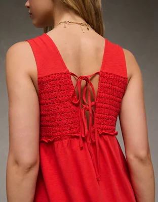 AE Sunchaser Knit V-Neck Crochet Mini Dress