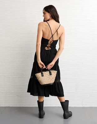 AE V-Neck Lace Tiered Maxi Dress