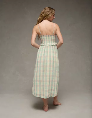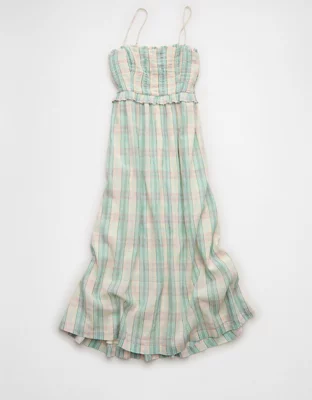 Elegantly refined, featuring a smocked bodice and sleeveless silhouette.