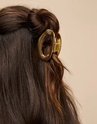 A classic, goes-with-anything oval claw clip with a glimmering gold finish.