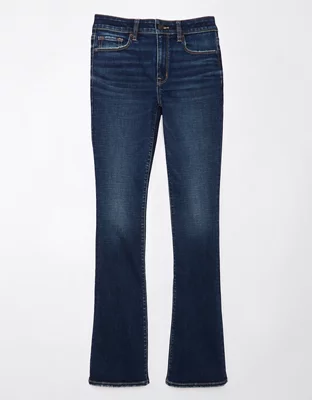 Fitted through the thigh with a high rise & a mini "kick" flare at the ankle. Also available in curvy!
