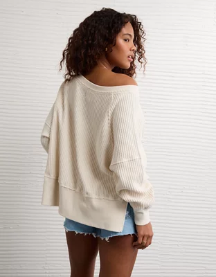 AE Big Hug Off-the-Shoulder Waffle Sweatshirt
