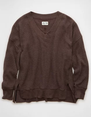 AE Big Hug V-Neck Waffle Sweatshirt