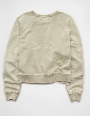 Raglan sleeves are stitched at an angle for a more comfortable fit and casual look. This sweatshirt is also cropped giving it a laidback vibe.