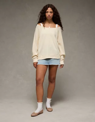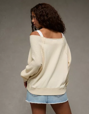 The coziest sweatshirt ever, featuring fabric blocking for a fun textural touch.