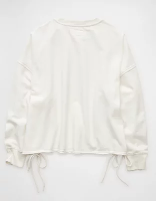 Not your standard crew neck fleece, this one features side lace-up details for added appeal.