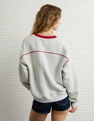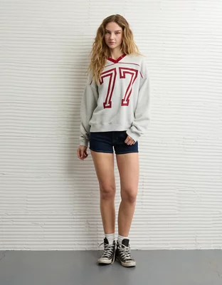 This soft fleece sweatshirt channels classic varsity vibes with a fresh v-neck.