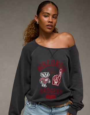 AE Wisconsin Badgers Graphic Off The Shoulder Sweatshirt