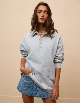 AE Washed Fleece Polo Sweatshirt