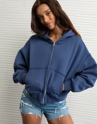 AE Boxy Double-Zip Balloon Sleeve Hoodie