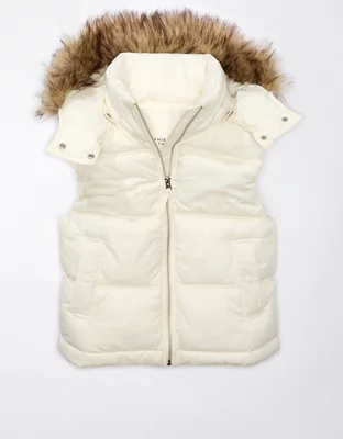 Kick off sweater weather season in this stylin' vest, featuring a faux fur trim hood for some extra cozy points.