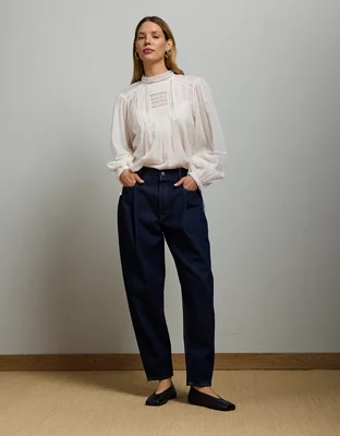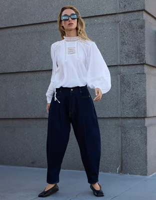 Add some luxury to your on-trend capsule wardrobe with this posh, elevated take on a barrel jean.