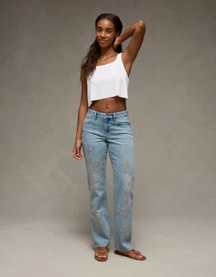 AE Stretch Curvy High-Waisted Embroidered Straight Jean