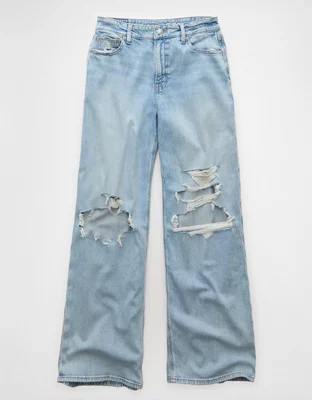 AE Dreamy Drapey Stretch Ripped Super High-Waisted Baggy Wide-Leg Jean