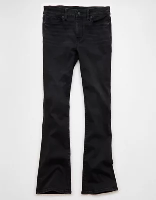 Fitted through the thigh with a high rise & a mini "kick" flare at the ankle.