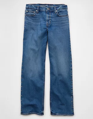 The it fit you need, with a high rise and wider leg from the thigh through the ankle, plus studs for an on-trend look.
