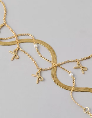 This shimmering gold-tone anklet features the prettiest bow accents.