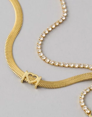 A statement stack featuring a dazzling tennis bracelet & snake chain with a pretty heart detail.