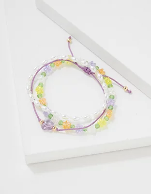 AEO Purple Butterfly Beaded Bracelet 3-Pack