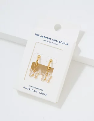 AEO Keepers Collection 14K Gold Plated Butterfly Hoop Earrings