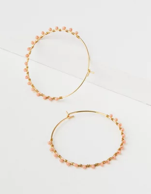 AE Pink & Gold Seed Bead Hoop Earring
