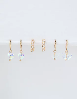 AEO Crystal Butterfly Hoop Earring 3-Pack