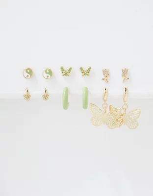 AEO Green Yin Yang Hoop + Stud Earring 6-Pack