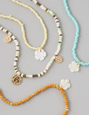 Layer your way! These necklaces feature blue beads, gold finishes and adorable daisy charms.