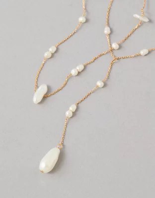 AEO Chipped Pearl Long Layered Necklace 2-Pack