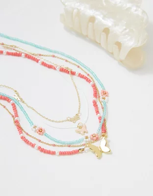 AEO Coral Daisy Butterfly Necklace 3-Pack