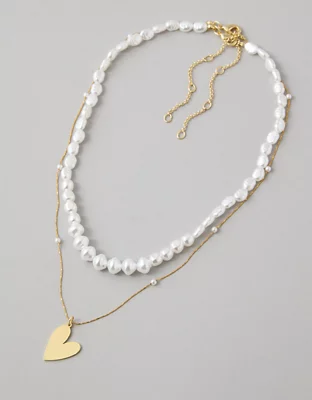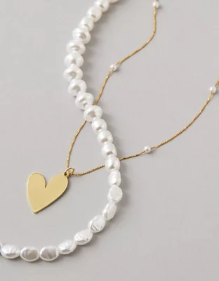 AEO Heart & Faux Pearl Necklace 2-Pack
