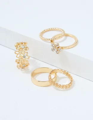 Flower power! Mix, match & stack your fave floral gold-tone rings with a shimmering finish.