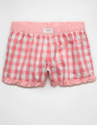 Constructed from crisp and cool poplin cotton, these comfy boxer shorts feature a cute ruffled hem.