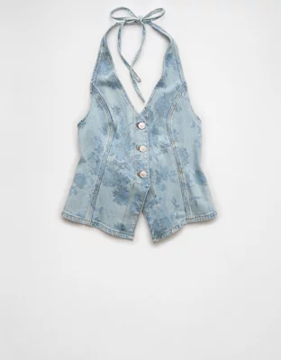 AE Floral Print Denim Tie-Back Vest