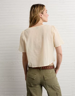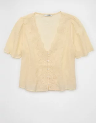 AE Lace Trim Short-Sleeve Blouse