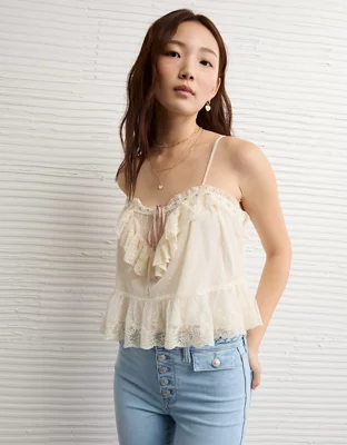 Upgrade your cami game with this femme, fluttery ruffle top.