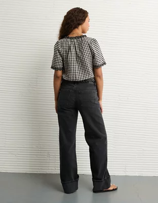 AE Short-Sleeve Gingham Button-Up Blouse