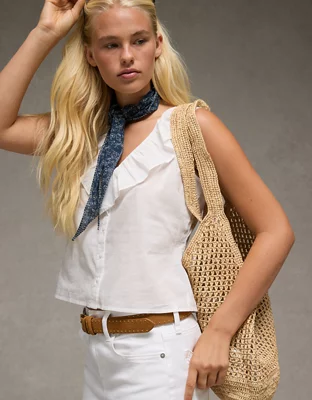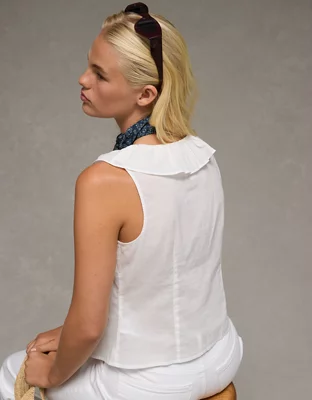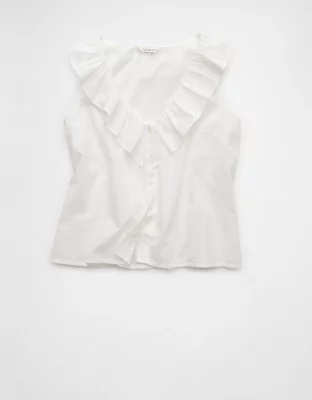 AE V-Neck Ruffle Button-Up Blouse