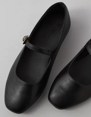Ballet-inspired flats feature a vegan leather construction with a gleaming gold-tone buckle for a grand finale.