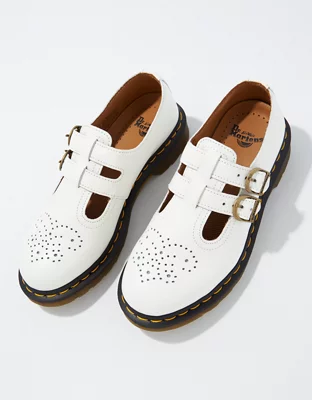 Fusing a classic T-bar fastening with a rugged AirWair sole, the well-trodden Mary Jane silhouette remains a favorite to this day. This edition stays true to the Original construction, with tough smooth leather and signature yellow welt stitching.