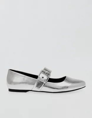 Statement hardware adds an edge to these simple ballet flats in smooth vegan leather.