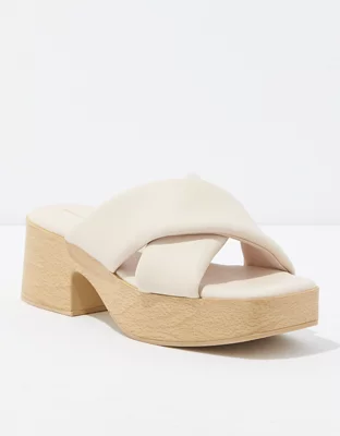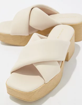 Raise your shoe game up a notch – these comfy clogs have an easy slide silhouette, criss-cross straps, and an elevated block heel.