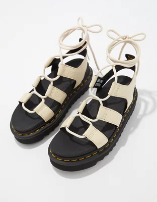 The Nartilla platform sandal from Dr. Martens will quickly become a staple in your warm weather wardrobe. The rugged design features a chunky sawtooth sole for added edge while the wraparound ankle tie creates a feminine finish.