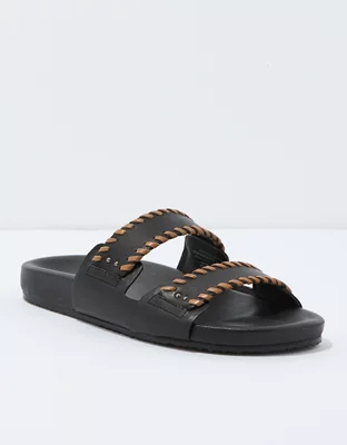 Easy, effortless and elegant – contrasting leather whipstitch lacing adds an artisanal touch to these luxe footbed sandals.