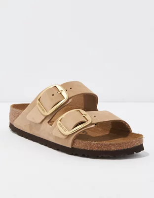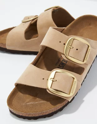 Classic Birkenstock comfort sandals with soft nubuck leather features & a big buckle accent.
